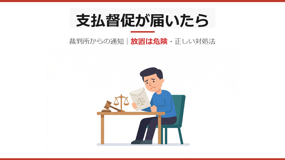 裁判所から届いた支払督促の意味、放置した場合のリスク(差し押さえ)、異議申し立ての方法、正しい対処法を弁護士監修で解説。架空請求の見分け方やFAQも掲載。 -