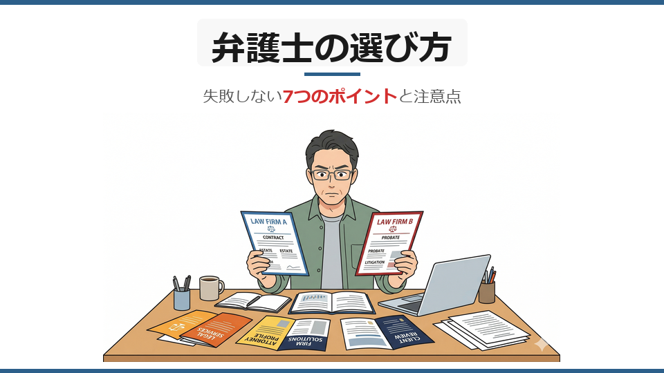 債務整理を依頼する弁護士の選び方を7つのポイントで解説。費用の透明性、実績、対応の質など、失敗しないための判断基準と、避けるべき事務所の特徴も紹介します。 -
